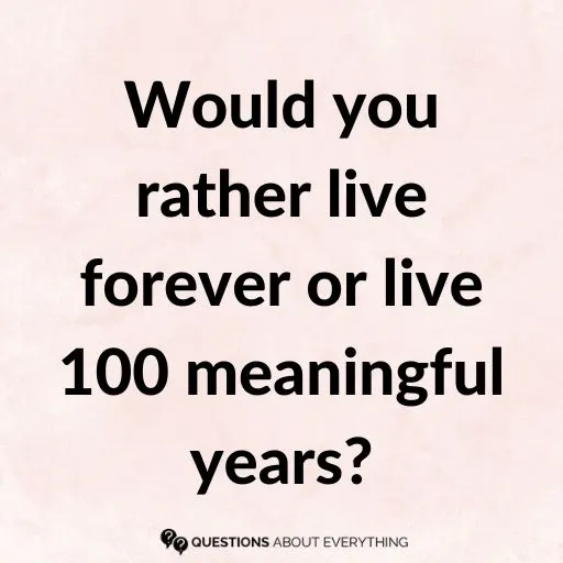 - Would you rather live forever or live 100 meaningful years?