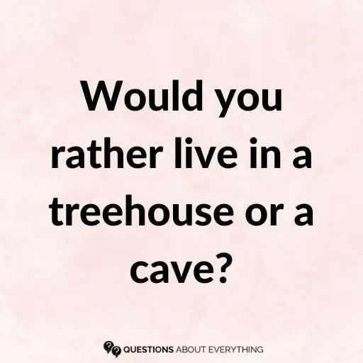 23. Would you rather live in a treehouse or a cave?