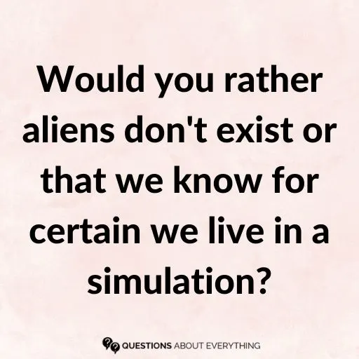91. Would you rather aliens don’t exist or that we know for certain we live in a simulation?